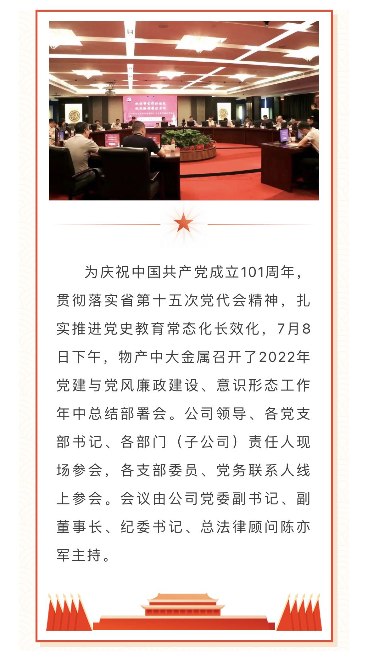 物產(chǎn)中大金屬黨委召開2022年黨建與黨風廉政建設、意識形態(tài)工作年中總結(jié)部署會