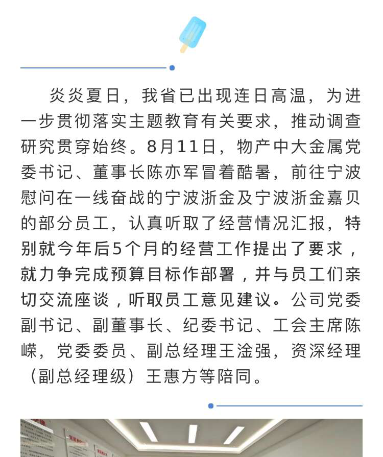 炎炎夏日送清涼,攻堅克難信心強|陳亦軍董事長赴寧波慰問一線員工