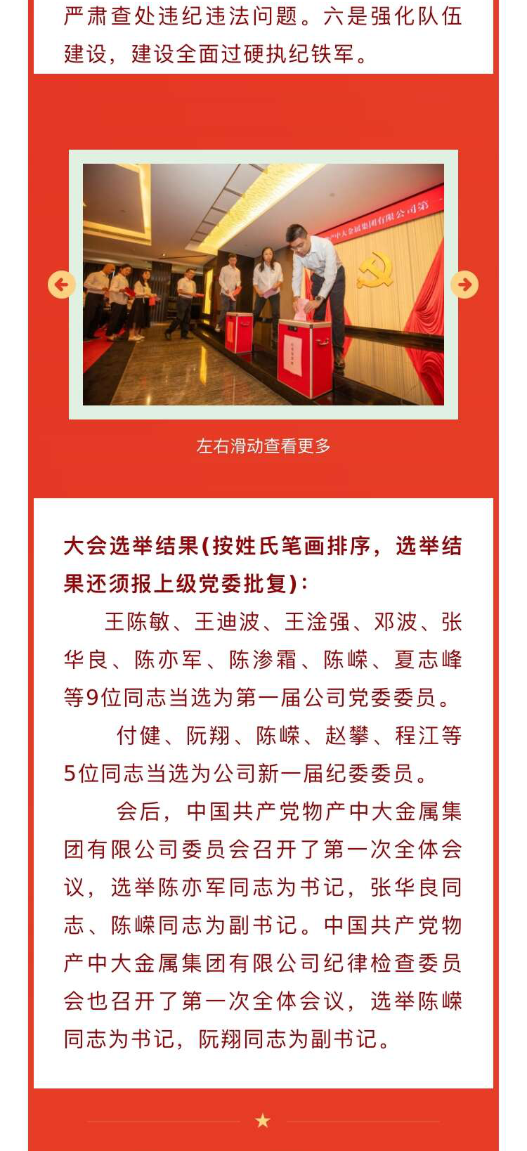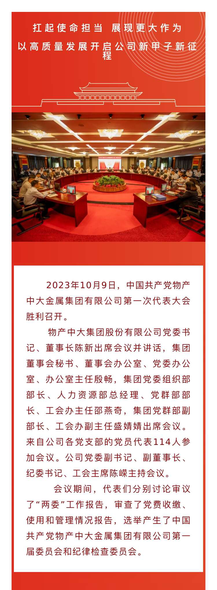 中國共產黨物產中大金屬集團有限公司第一次代表大會勝利召開